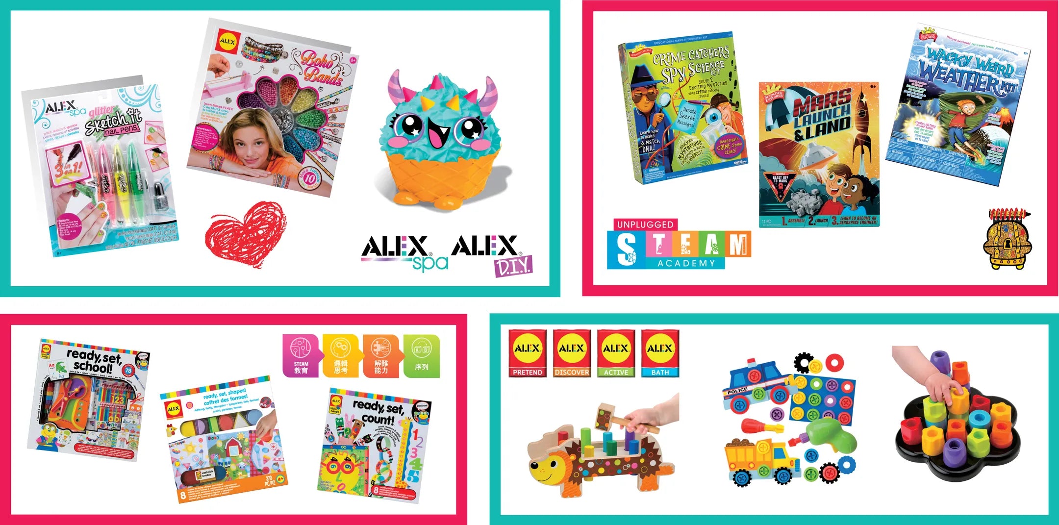 The Alex brand's mission is to foster children's creativity, imagination and expression, and help them build confidence. We firmly believe that the best way for children to learn is through fun games and activities, allowing children to gain new inspiration and enlightenment in the process of playing. In line with the development trend of STEAM education, Alex has launched a number of games related to science, engineering and art, including Future Coders programming games, Sweetlings dessert workshop, Scientific Explorer science games, and craft and creation series, to enhance children's development in programming, problem-solving skills, logical thinking and artistic creativity. Alex Enlightenment Toys designs unique toys and game products for children of all ages that meet the needs of different growth stages. Over the years, the Alex brand has won numerous honors and awards from world-renowned media and professional toy review organizations, providing new and creative products that are sold well in more than 80 countries around the world.